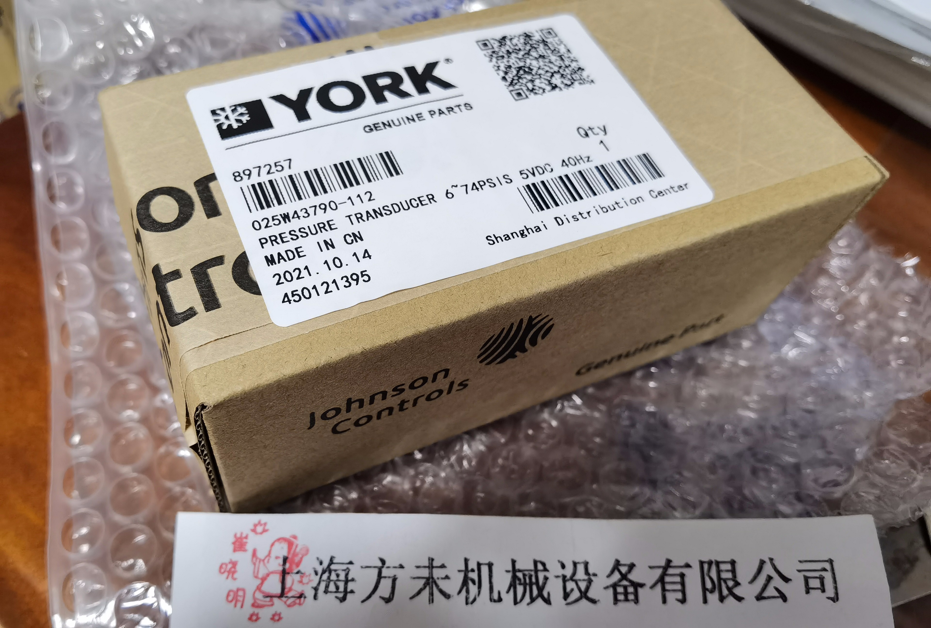 Johnson Controls壓力傳感器到貨